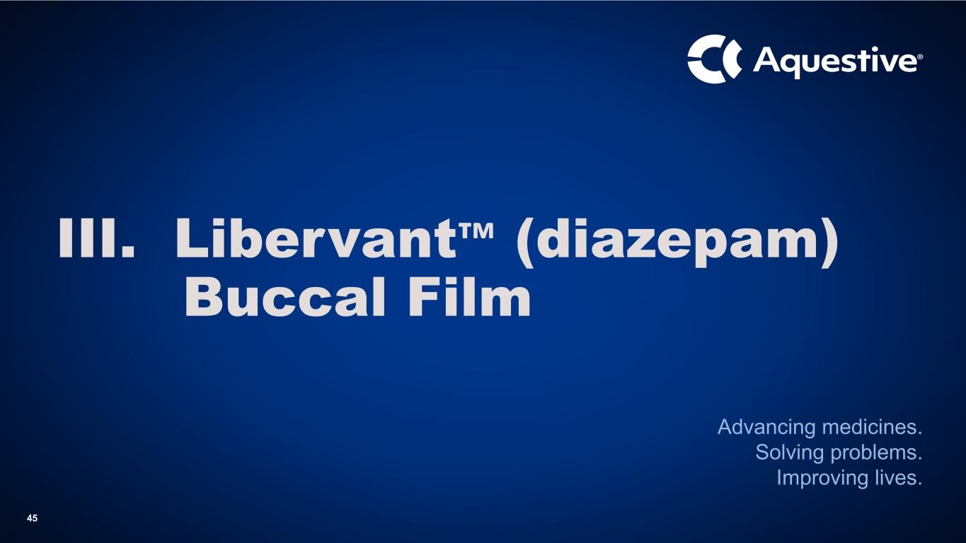 Advancing medicines. Solving problems. Improving lives. III. Libervant™ (diazepam) Buccal Film 45