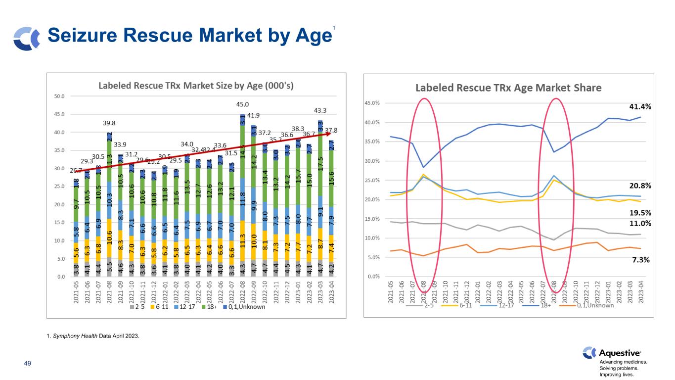 Advancing medicines. Solving problems. Improving lives. 48 Seizure Rescue Market The seizure rescue market continues to grow with new products being promoted. Based upon publicly available data, Valtoco® has flat to growing market share in all age groups in which it competes. 1. Symphony Health Data April 2023. 1