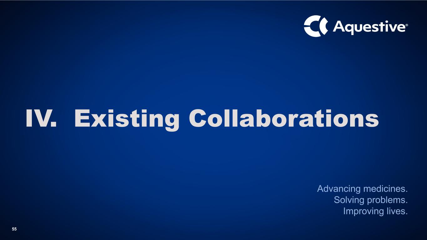 Advancing medicines. Solving problems. Improving lives. IV. Existing Collaborations 55