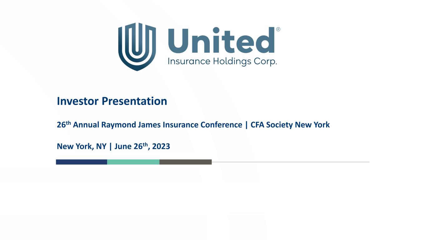 Investor Presentation 26th Annual Raymond James Insurance Conference | CFA Society New York New York, NY | June 26th, 2023