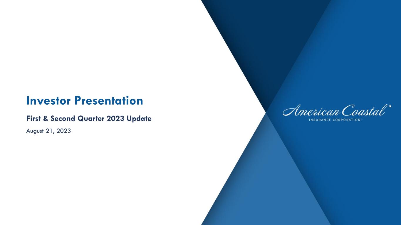 First & Second Quarter 2023 Update August 21, 2023 Investor Presentation
