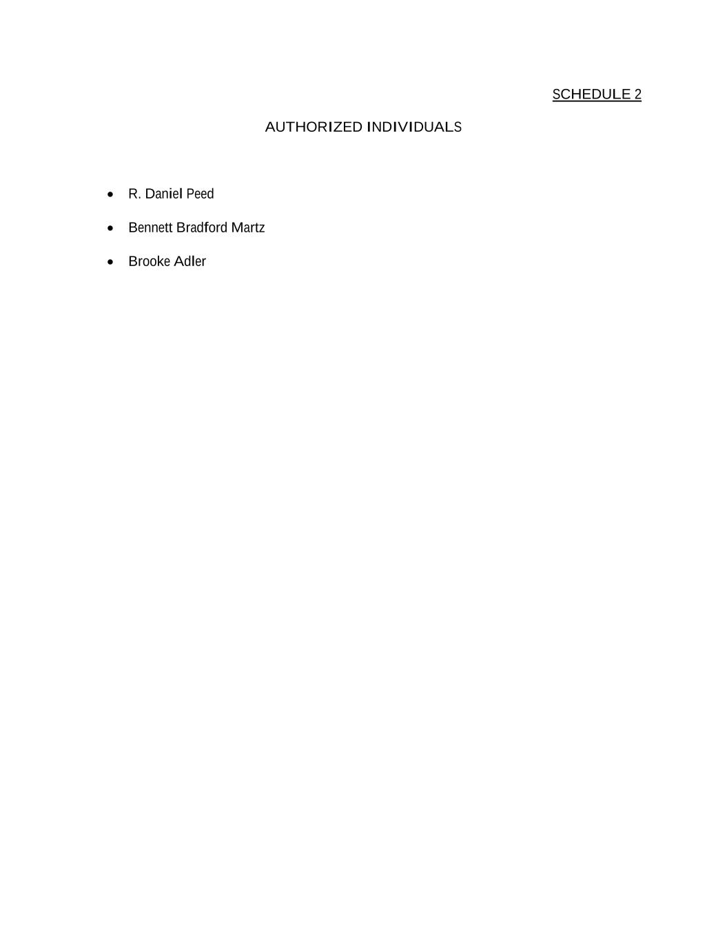 SCHEDULE 2 AUTHORIZED INDIVIDUALS • R. Daniel Peed • Bennett Bradford Martz • Brooke Adler