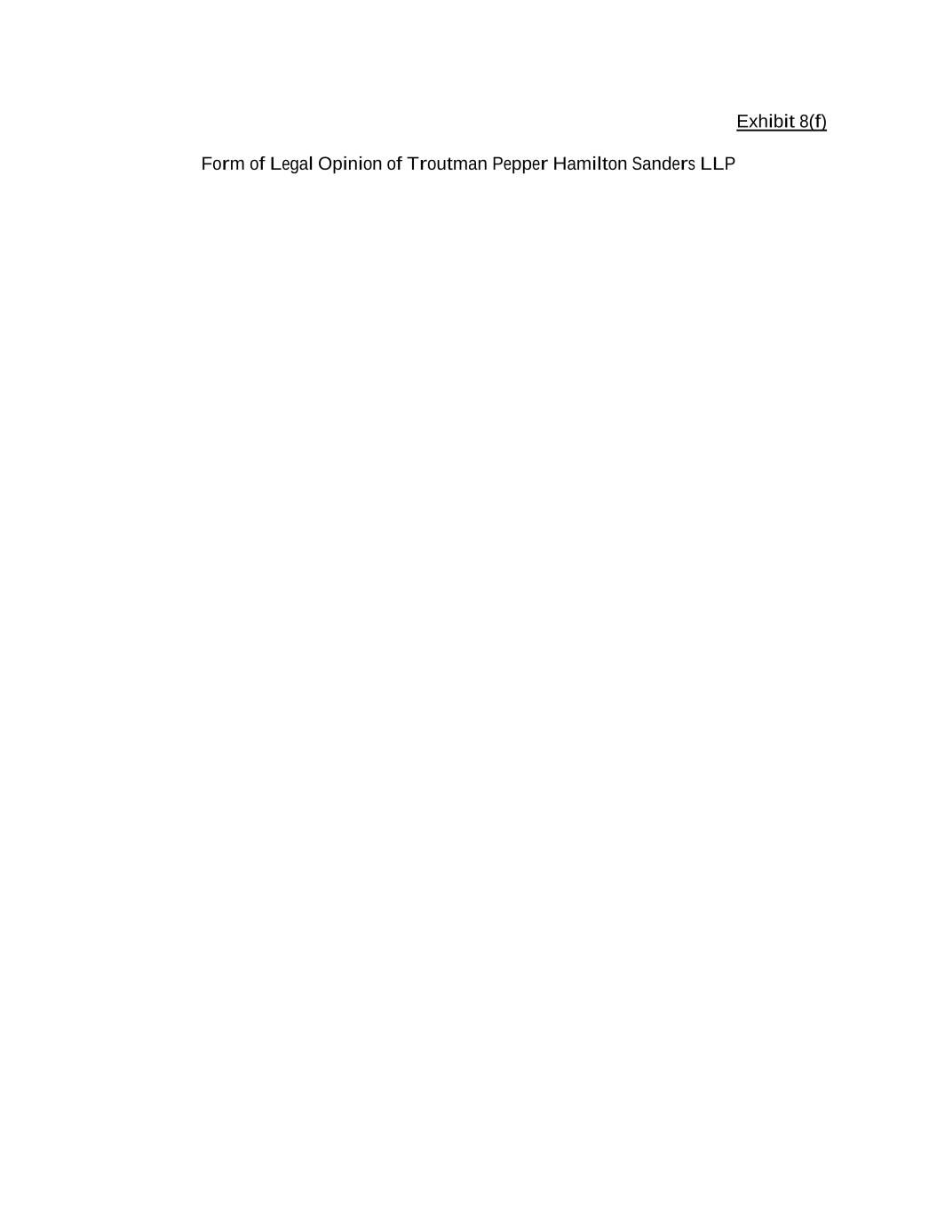 Exhibit 8(f) Form of Legal Opinion of Troutman Pepper Hamilton Sanders LLP