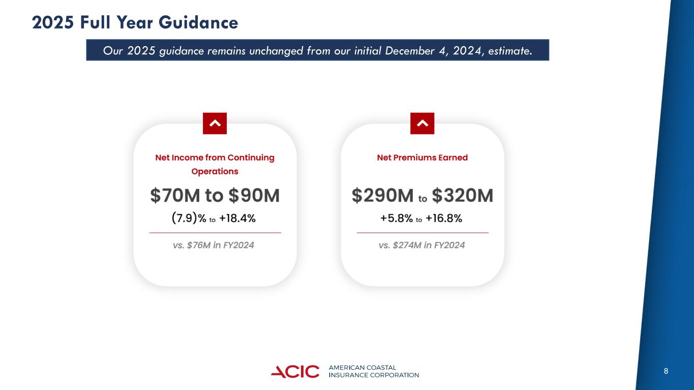 8 2025 Full Year Guidance Our 2025 guidance remains unchanged from our initial December 4, 2024, estimate.