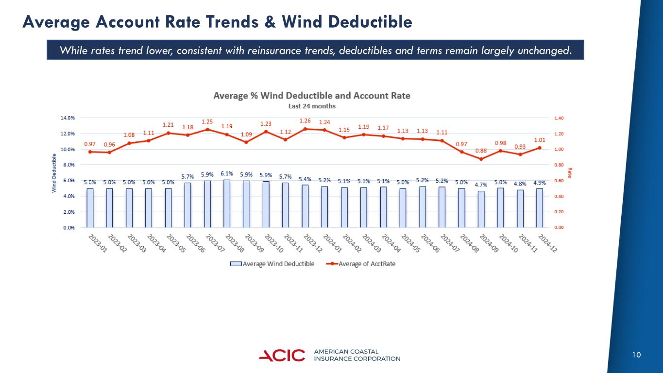 10 Average Account Rate Trends & Wind Deductible While rates trend lower, consistent with reinsurance trends, deductibles and terms remain largely unchanged.