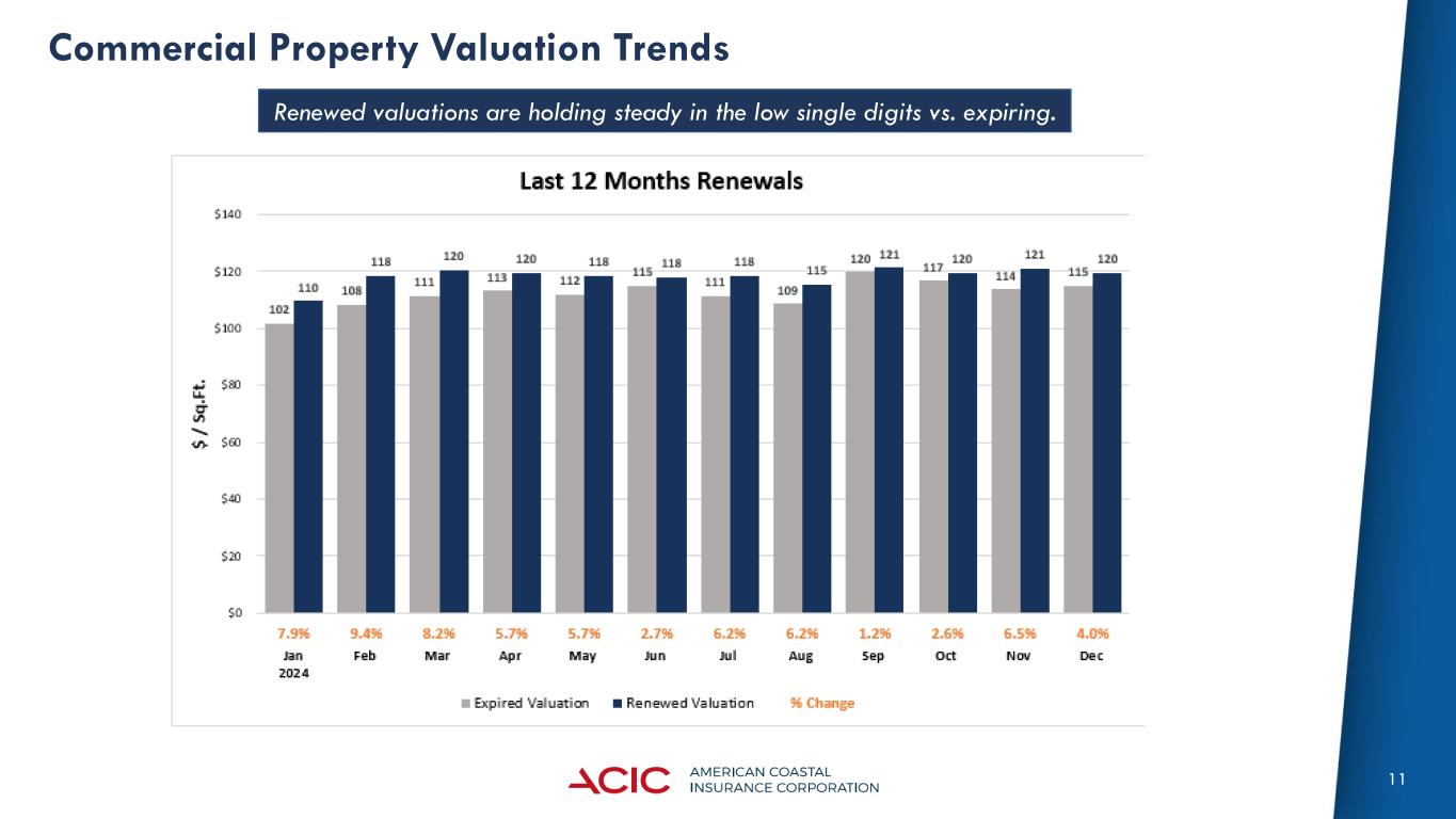 11 Commercial Property Valuation Trends Renewed valuations are holding steady in the low single digits vs. expiring.