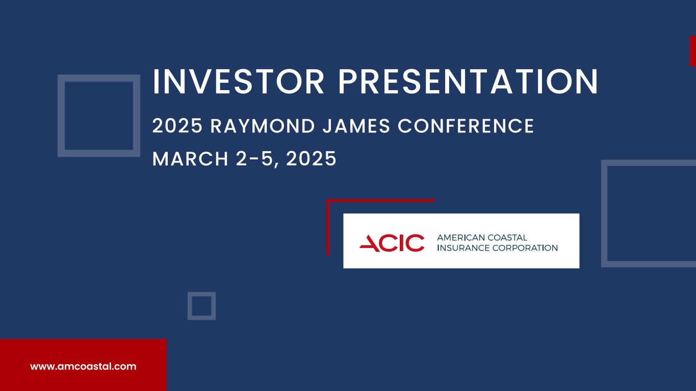 INVESTOR PRESENTATION 2025 RAYMOND JAMES CONFERENCE MARCH 2-5, 2025 www.amcoastal.com