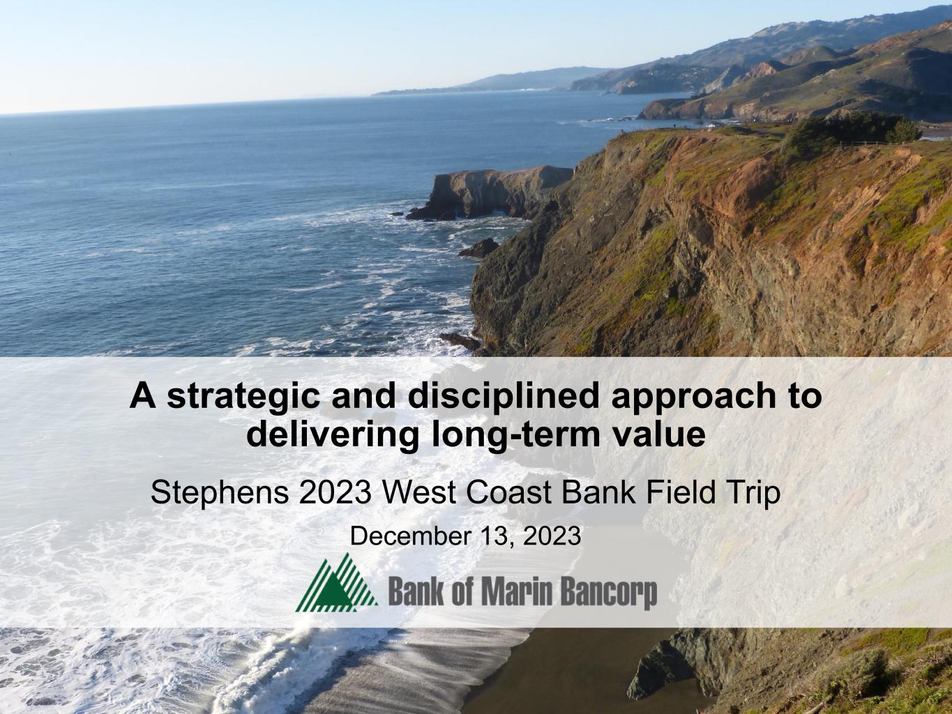 A strategic and disciplined approach to delivering long-term value Stephens 2023 West Coast Bank Field Trip December 13, 2023