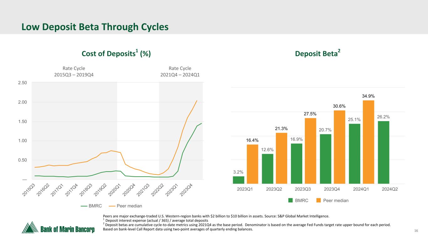 16 Text 95,96,96 Light Gray 232, 232, 232 Black 0, 0, 0 White 255, 255, 255 Accent 1 7,89,52 Accent 2 248,153,40 Accent 3 254,217,129 Accent 4 52,153,70 Accent 5 5,39,67 Accent 6 171,184,195 Peers are major exchange-traded U.S. Western-region banks with $2 billion to $10 billion in assets. Source: S&P Global Market Intelligence. 1 Deposit interest expense (actual / 365) / average total deposits 2 Deposit betas are cumulative cycle-to-date metrics using 2021Q4 as the base period. Denominator is based on the average Fed Funds target rate upper bound for each period. Based on bank-level Call Report data using two-point averages of quarterly ending balances. Low Deposit Beta Through Cycles Cost of Deposits1 (%) Deposit Beta2 Rate Cycle 2021Q4 – 2024Q1 Rate Cycle 2015Q3 – 2019Q4 BMRC Peer median 20 15 Q3 20 16 Q2 20 17 Q1 20 17 Q4 20 18 Q3 20 19 Q2 20 20 Q1 20 20 Q4 20 21 Q3 20 22 Q2 20 23 Q1 20 23 Q4 — 0.50 1.00 1.50 2.00 2.50 3.2% 12.6% 16.9% 20.7% 25.1% 26.2% 16.4% 21.3% 27.5% 30.6% 34.9% BMRC Peer median 2023Q1 2023Q2 2023Q3 2023Q4 2024Q1 2024Q2