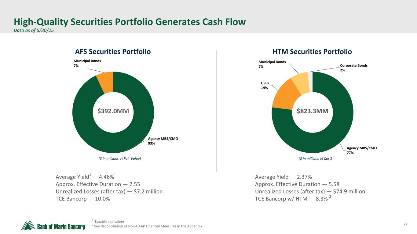 29 Text 95,96,96 Light Gray 232, 232, 232 Black 0, 0, 0 White 255, 255, 255 Accent 1 7,89,52 Accent 2 248,153,40 Accent 3 254,217,129 Accent 4 52,153,70 Accent 5 5,39,67 Accent 6 171,184,195 AOCI and Tangible Equity M ill io ns $398.4 $407.9 $414.6 $416.2 $418.4 $415.5 $415.5 $390.2 $387.7 $390.0 $391.7 $377.8 $318.4 $334.2 $352.6 $346.8 $341.8 $362.5 $360.4 $358.9 $361.2 $359.9 $364.2 $363.4$80.0 $73.7 $62.0 $69.4 $76.6 $53.0 $55.1 $31.3 $26.5 $30.1 $27.5 $14.4 40.8% 42.8% 42.5% 42.0% 39.5% 38.8% 38.5% 33.1% 31.3% 34.2% 32.8% 32.6% 7.5% 8.2% 8.7% 8.6% 8.6% 9.7% 9.8% 9.9% 9.7% 9.9% 9.8% 10.0% Tangible Equity (net AOCL Impact) Accumulated Other Comprehensive Loss Investments/Total Assets Tangible Equity/Tangible Assets Sep 2022 Dec 2022 Mar 2023 Jun 2023 Sep 2023 Dec 2023 Mar 2024 Jun 2024 Sep 2024 Dec 2024 Mar 2025 Jun 2025 $— $100.0 $200.0 $300.0 $400.0 $500.0 —% 10.0% 20.0% 30.0% 40.0% 50.0% 60.0% 70.0% 80.0%