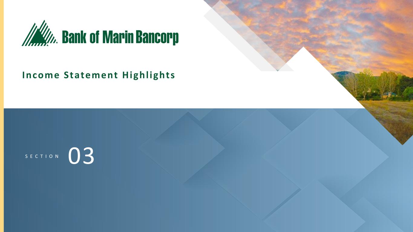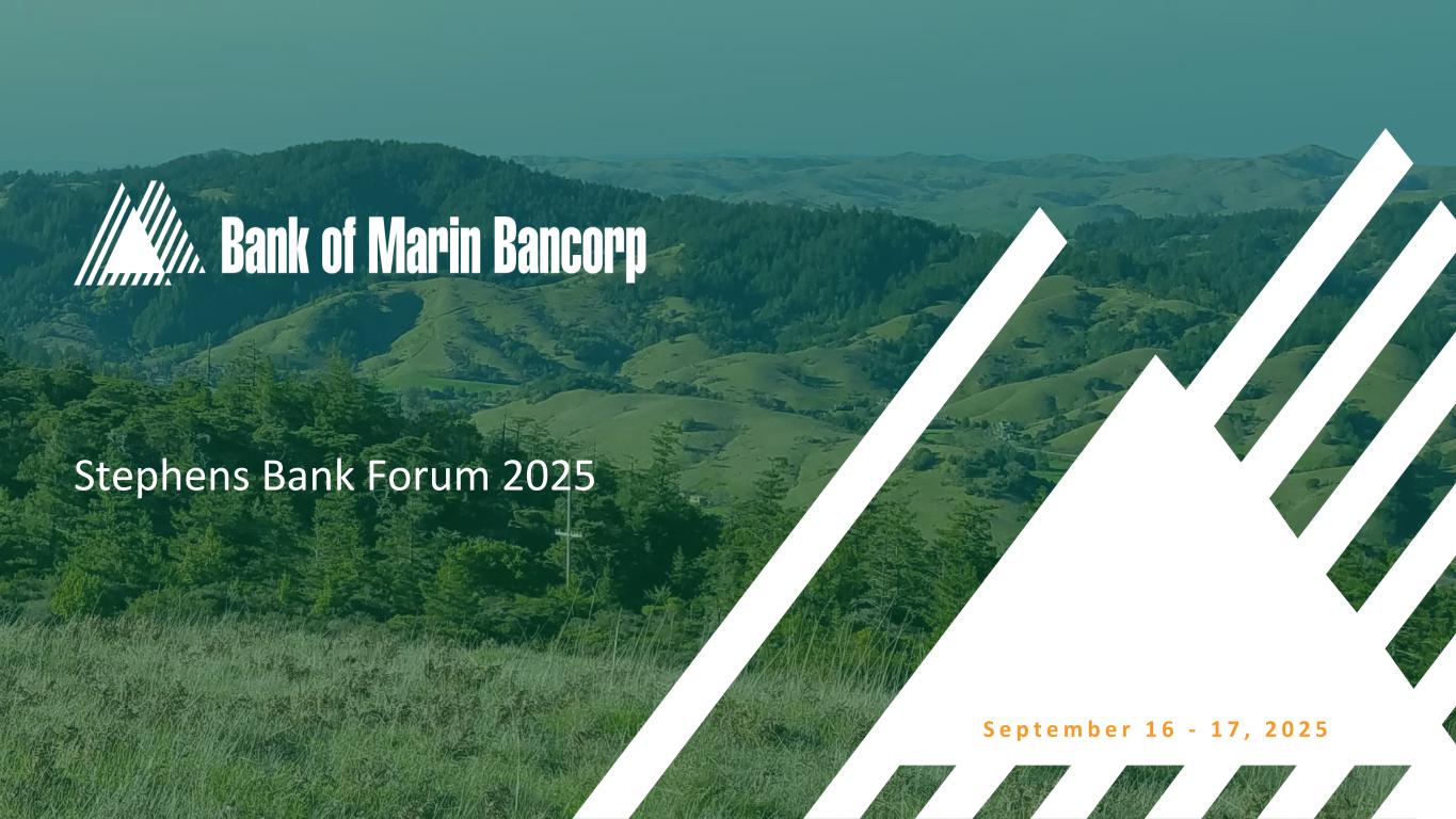 2 Text 95,96,96 Light Gray 232, 232, 232 Black 0, 0, 0 White 255, 255, 255 Accent 1 7,89,52 Accent 2 248,153,40 Accent 3 254,217,129 Accent 4 52,153,70 Accent 5 5,39,67 Accent 6 171,184,195 Forward-Looking Statements This discussion of financial results includes forward-looking statements within the meaning of Section 27A of the Securities Act of 1933, as amended, (the "1933 Act") and Section 21E of the Securities Exchange Act of 1934, as amended, (the "1934 Act"). Those sections of the 1933 Act and 1934 Act provide a "safe harbor" for forward-looking statements to encourage companies to provide prospective information about their financial performance so long as they provide meaningful, cautionary statements identifying important factors that could cause actual results to differ significantly from projected results. Our forward-looking statements include descriptions of plans or objectives of management for future operations, products or services, and forecasts of revenues, earnings or other measures of economic performance. Forward-looking statements can be identified by the fact that they do not relate strictly to historical or current facts. They often include the words "believe," "expect," "intend," "estimate" or words of similar meaning, or future or conditional verbs preceded by "will," "would," "should," "could" or "may." Forward-looking statements are based on management's current expectations regarding economic, legislative, and regulatory issues that may affect our earnings in future periods. Factors that could cause future results to vary materially from current management expectations include, but are not limited to, general economic conditions and the economic uncertainty in the United States and abroad, including economic or other disruptions to financial markets caused by the Trump administration's approach to tariffs and trade, acts of terrorism, war or other conflicts, impacts from inflation, supply chain disruptions, changes in interest rates (including the actions taken by the Federal Reserve to control inflation), California's unemployment rate, deposit flows, real estate values, and expected future cash flows on loans and securities; the impact of adverse developments at other banks, including bank failures, that impact general sentiment regarding the stability and liquidity of banks; costs or effects of acquisitions; competition; changes in accounting principles, policies or guidelines; changes in legislation or regulation; natural disasters (such as wildfires and earthquakes in our area); adverse weather conditions; interruptions of utility service in our markets for sustained periods; and other economic, competitive, governmental, regulatory and technological factors (including external fraud and cybersecurity threats) affecting our operations, pricing, products and services; and successful integration of acquisitions. These and other important factors detailed in various securities law filings made periodically by Bancorp, copies of which are available from us at no charge. Forward-looking statements speak only as of the date they are made. Bancorp undertakes no obligation to release publicly the result of any revisions to these forward-looking statements that may be made to reflect events or circumstances that occur after the date of this press release or to reflect the occurrence of unanticipated events. GAAP to Non-GAAP Financial Measures This presentation includes some non-GAAP financial measures as shown in the Appendix of this presentation. Please refer to the reconciliation of GAAP to Non-GAAP financial measures included in our Form 8-K under Item 9 - Financial Statements and Exhibit 99.1 filed with the SEC on July 28, 2025.