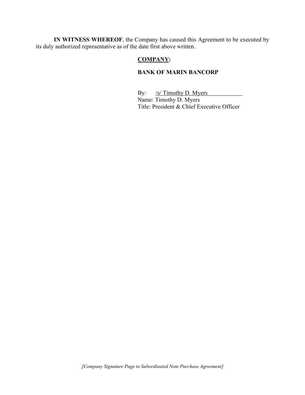 [Company Signature Page to Subordinated Note Purchase Agreement] IN WITNESS WHEREOF, the Company has caused this Agreement to be executed by its duly authorized representative as of the date first above written. COMPANY: BANK OF MARIN BANCORP By: /s/ Timothy D. Myers Name: Timothy D. Myers Title: President & Chief Executive Officer