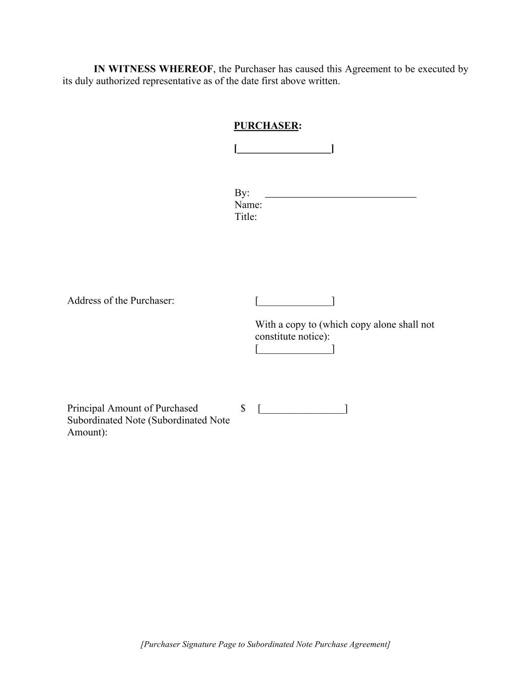 [Purchaser Signature Page to Subordinated Note Purchase Agreement] IN WITNESS WHEREOF, the Purchaser has caused this Agreement to be executed by its duly authorized representative as of the date first above written. PURCHASER: [__________________] By: Name: Title: Address of the Purchaser: [______________] With a copy to (which copy alone shall not constitute notice): [______________] Principal Amount of Purchased Subordinated Note (Subordinated Note Amount): $ [________________]