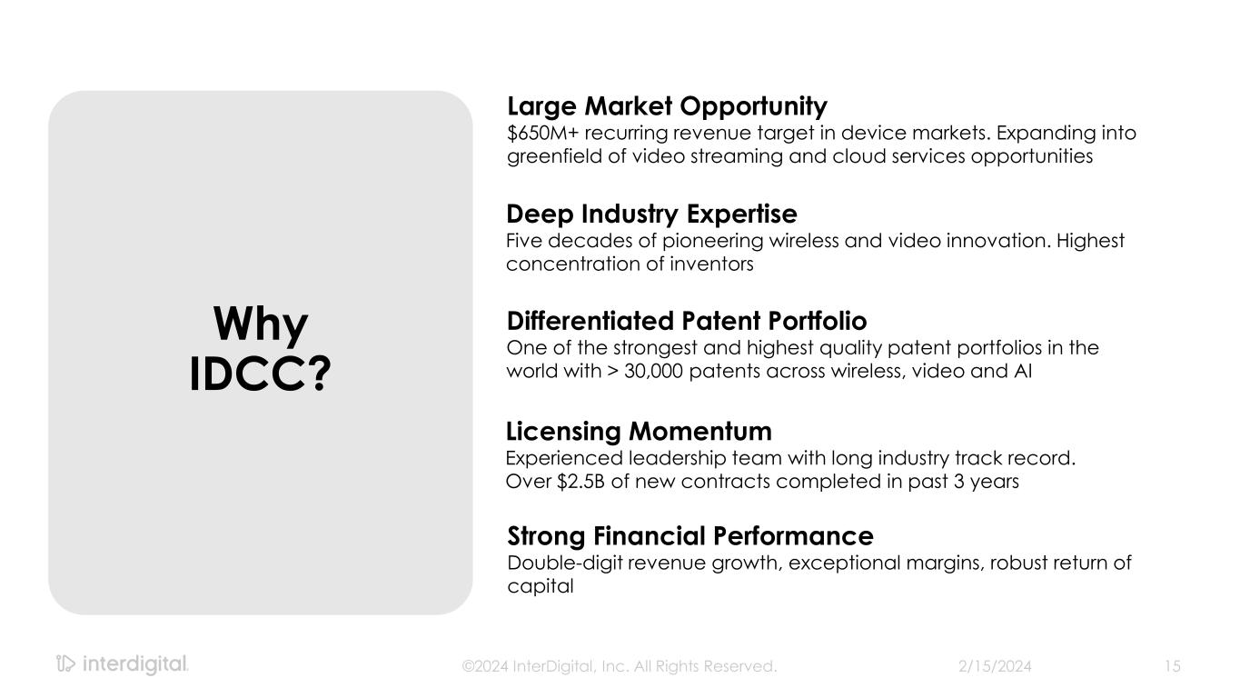 Background on InterDigital As of February 15, 2024