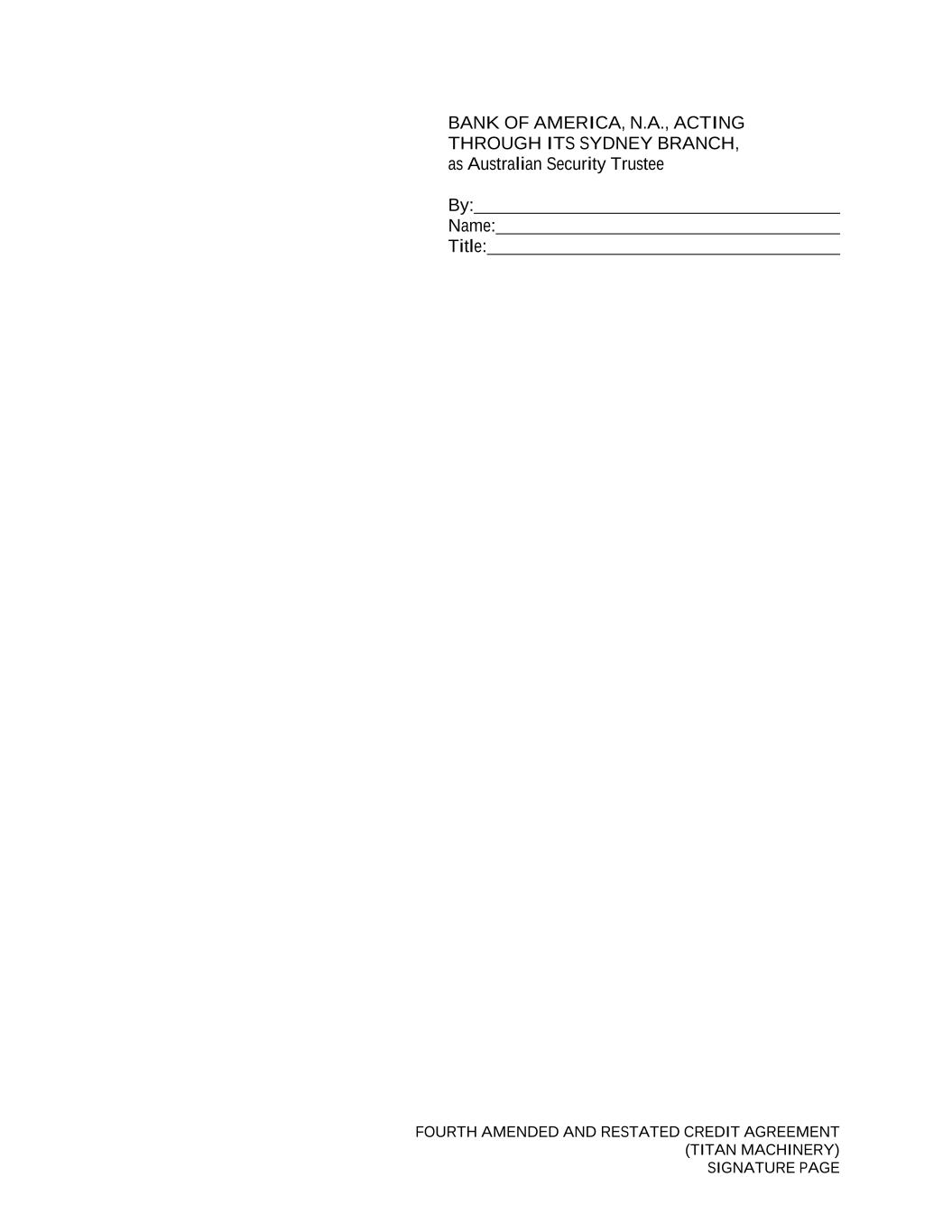 FOURTH AMENDED AND RESTATED CREDIT AGREEMENT (TITAN MACHINERY) SIGNATURE PAGE BANK OF AMERICA, N.A., ACTING THROUGH ITS SYDNEY BRANCH, as Australian Security Trustee By: Name: Title: