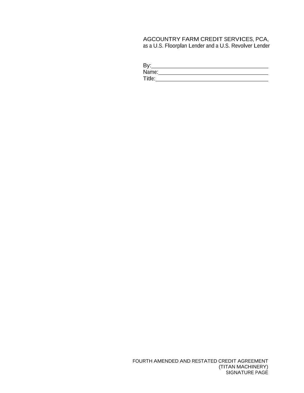 FOURTH AMENDED AND RESTATED CREDIT AGREEMENT (TITAN MACHINERY) SIGNATURE PAGE AGCOUNTRY FARM CREDIT SERVICES, PCA, as a U.S. Floorplan Lender and a U.S. Revolver Lender By: Name: Title: