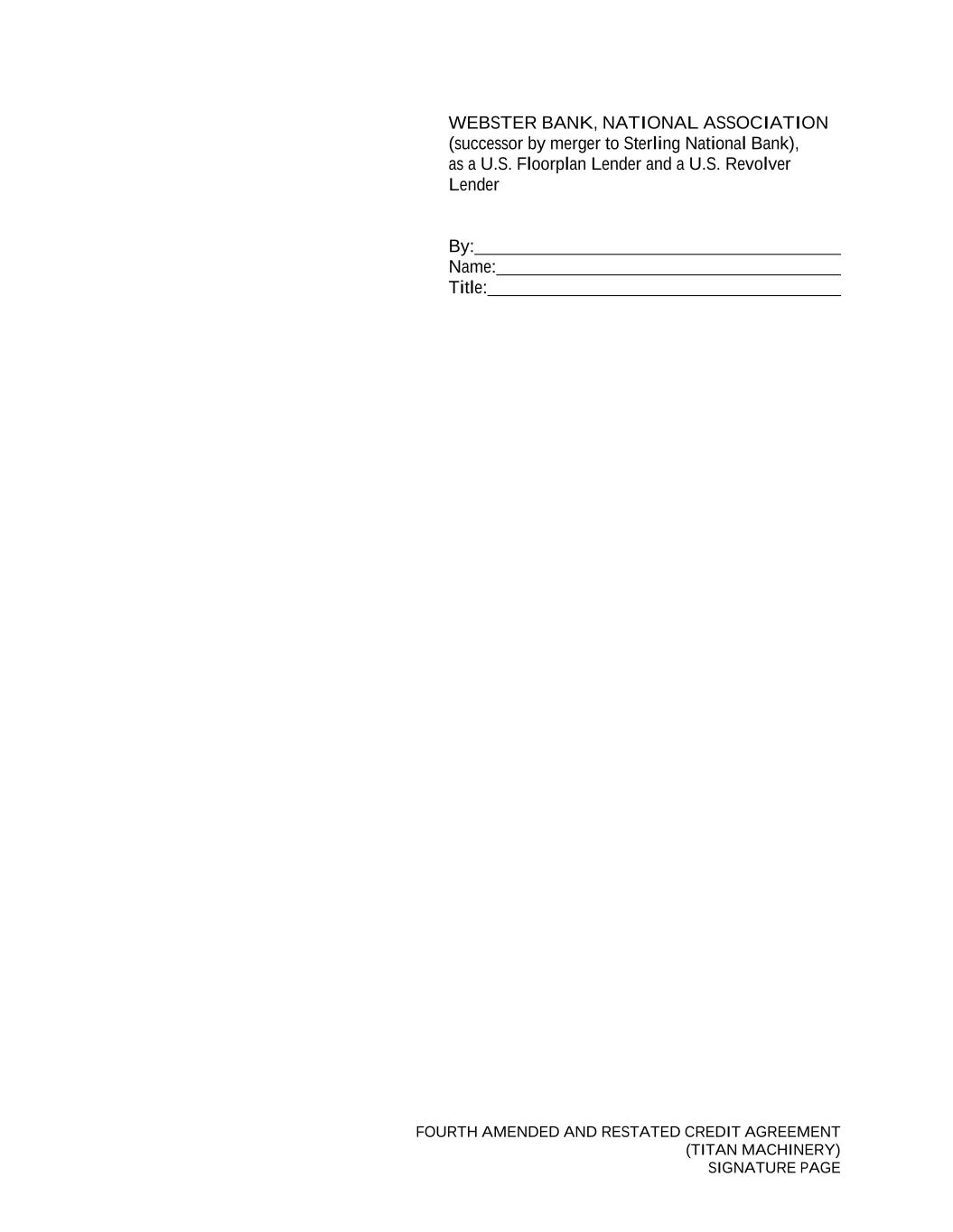 FOURTH AMENDED AND RESTATED CREDIT AGREEMENT (TITAN MACHINERY) SIGNATURE PAGE WEBSTER BANK, NATIONAL ASSOCIATION (successor by merger to Sterling National Bank), as a U.S. Floorplan Lender and a U.S. Revolver Lender By: Name: Title: