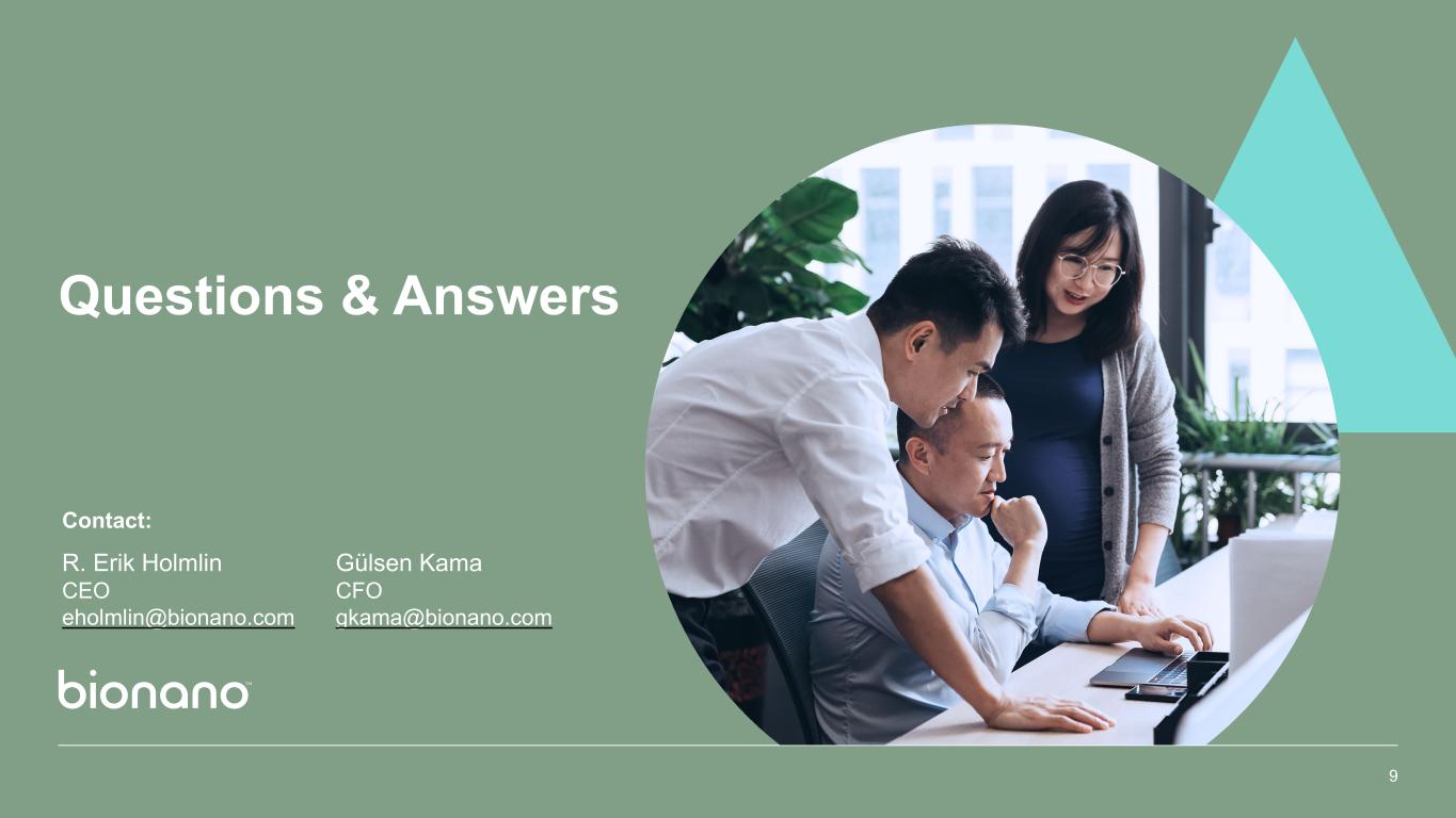 Questions & Answers 9 Contact: R. Erik Holmlin CEO eholmlin@bionano.com Gülsen Kama CFO gkama@bionano.com