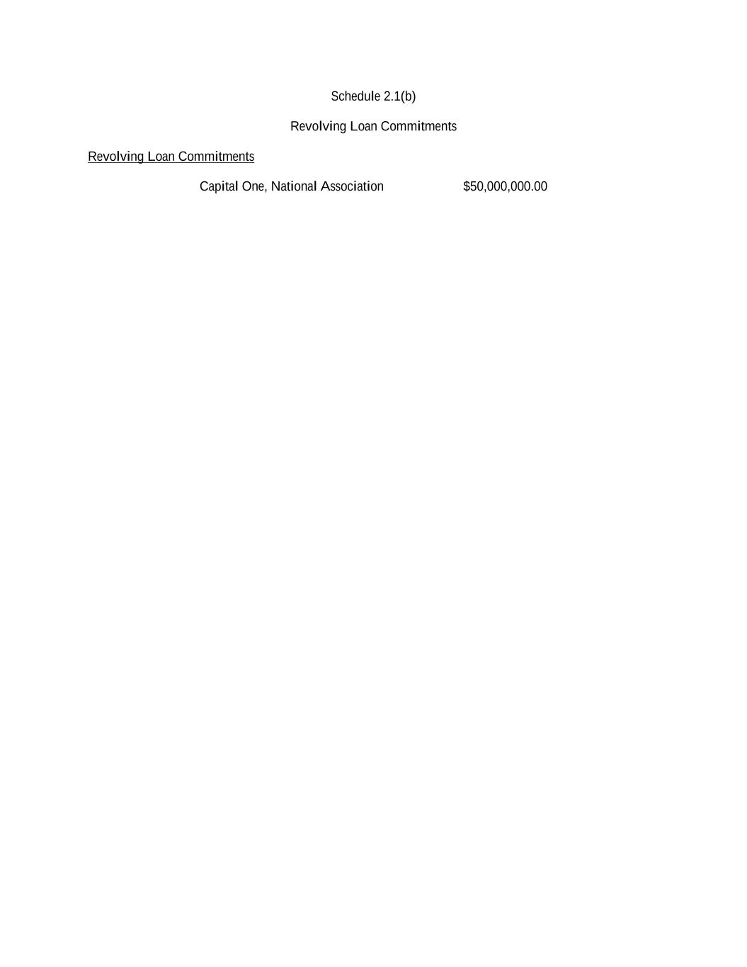 Schedule 2.1(b) Revolving Loan Commitments Revolving Loan Commitments Capital One, National Association $50,000,000.00