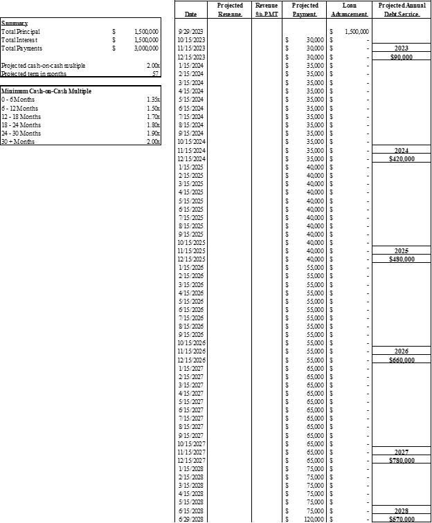 On or before 6 months after the Effective Date   0.35 times the Amount Advanced