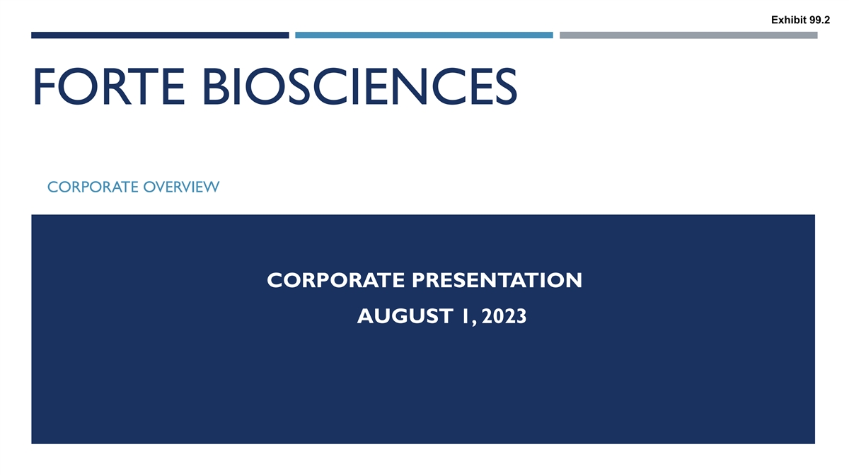 Exhibit 99.2 FORTE BIOSCIENCES CORPORATE OVERVIEW CORPORATE PRESENTATION AUGUST 1, 2023