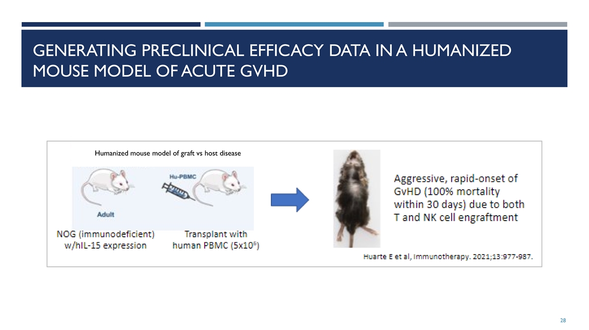 GENERATING PRECLINICAL EFFICACY DATA IN A HUMANIZED MOUSE MODEL OF ACUTE GVHD Humanized mouse model of graft vs host disease 28