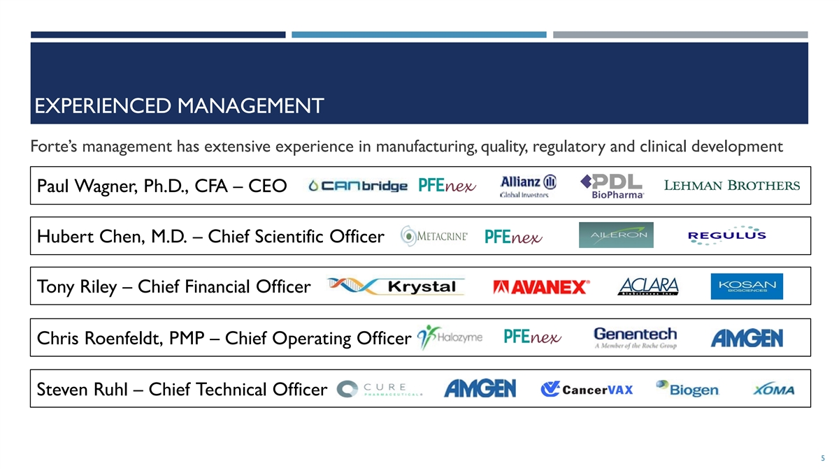 EXPERIENCED MANAGEMENT Forte’s management has extensive experience in manufacturing, quality, regulatory and clinical development Paul Wagner, Ph.D., CFA – CEO Hubert Chen, M.D. – Chief Scientific Officer Tony Riley – Chief Financial Officer Chris Roenfeldt, PMP – Chief Operating Officer Steven Ruhl – Chief Technical Officer 5