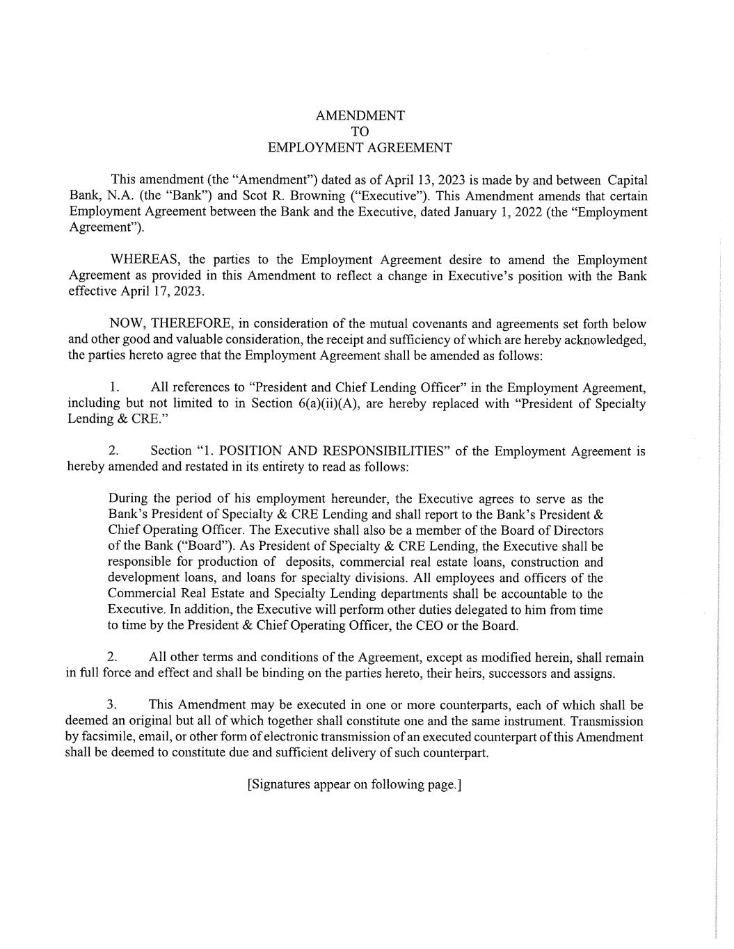 EX-10.2 3 amendmenttobrowningemplo.htm EX-10.2 amendmenttobrowningemplo