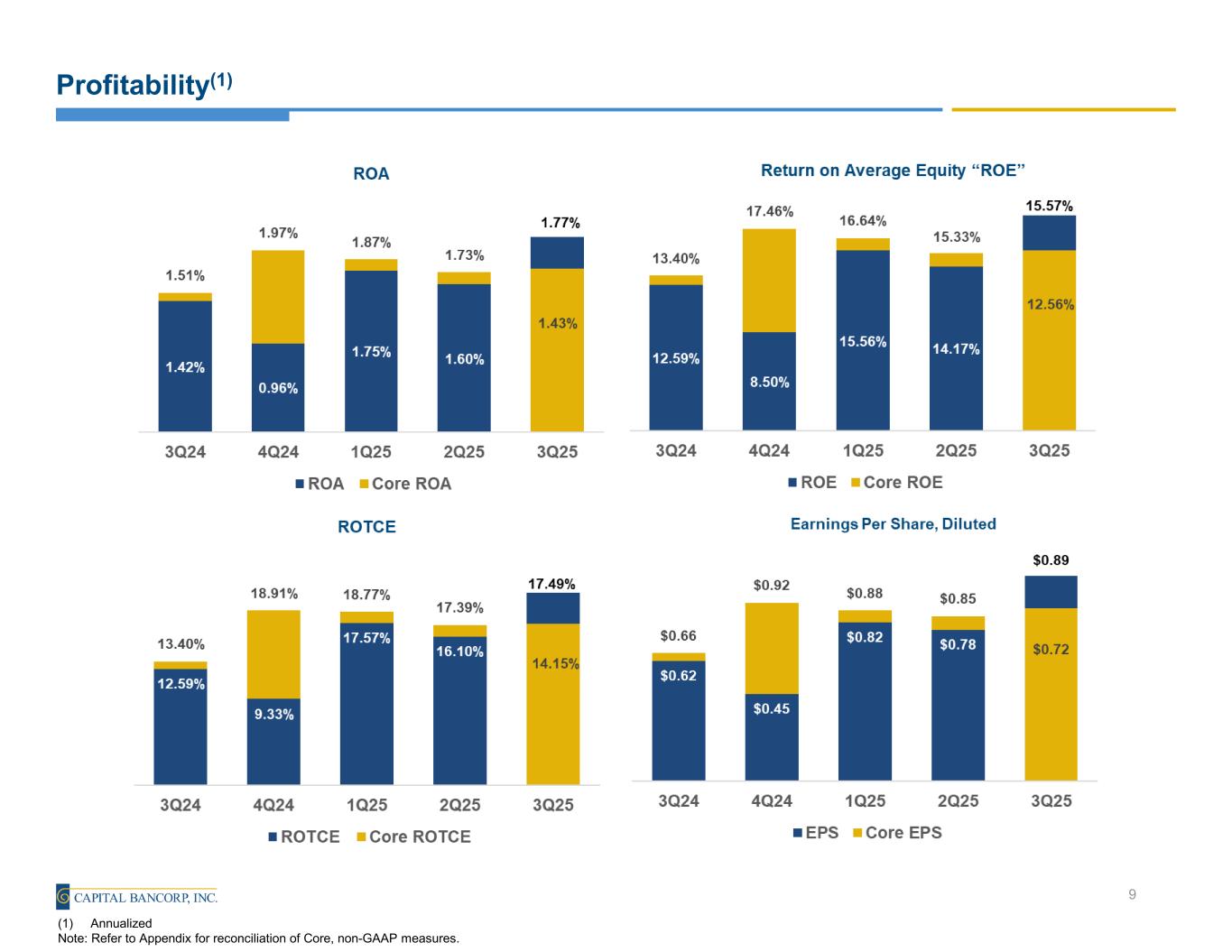 Profitability(1) 9 (1) Annualized Note: Refer to Appendix for reconciliation of Core, non-GAAP measures.