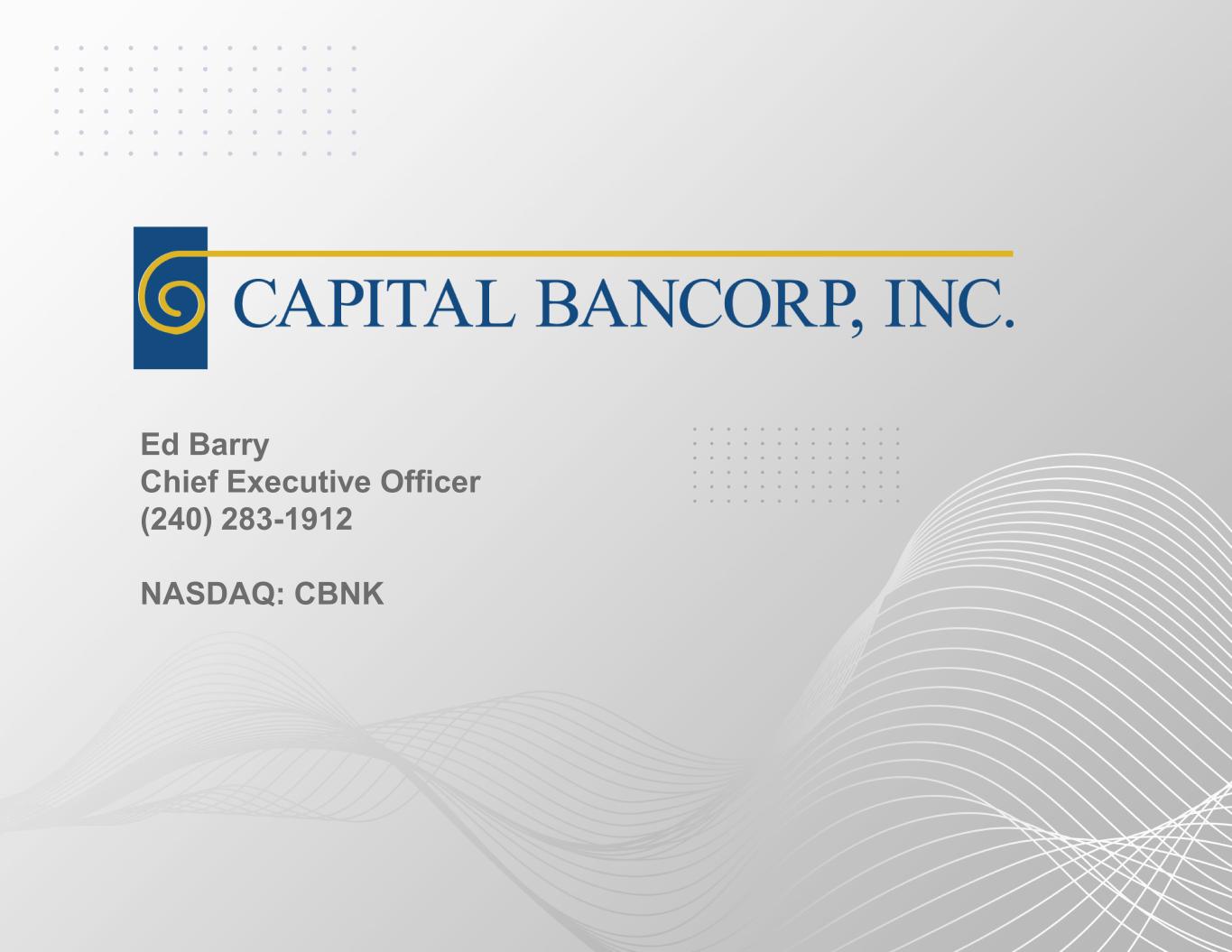 Ed Barry Chief Executive Officer (240) 283-1912 NASDAQ: CBNK
