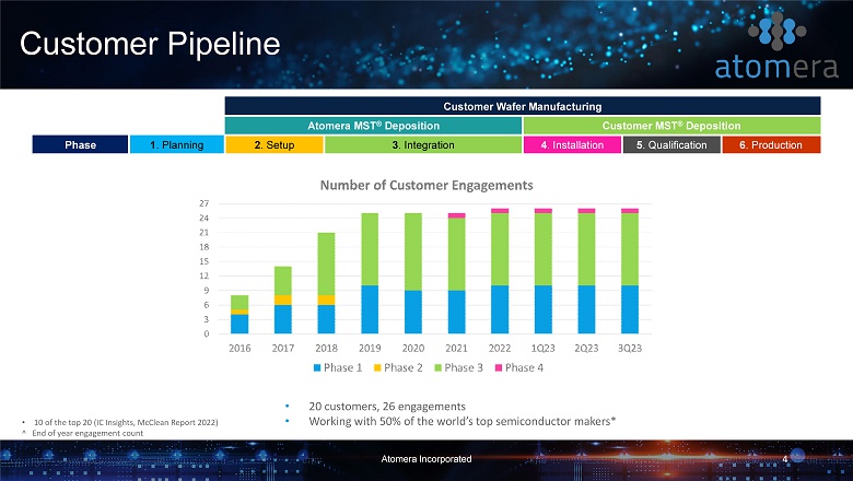 Customer Pipeline 4 • 20 customers, 26 engagements • Working with 50% of the world’s top semiconductor makers* • 10 of the top 20 (IC Insights, McClean Report 2022) ^ End of year engagement count Atomera Incorporated v Customer Wafer Manufacturing Atomera MST ® Deposition Customer MST ® Deposition Phase 1 . Planning 2 . Setup 3 . Integration 4 . Installation 5 . Qualification 6 . Production