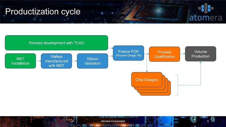 Chip Designs Start Productization cycle Atomera Incorporated 5 Freeze PDK (Process Design Kit) Silicon Validation Wafers manufactured with MST Process development with TCAD Process Qualification Volume Production Chip Designs Start Chip Designs Start Chip Designs MST Installation