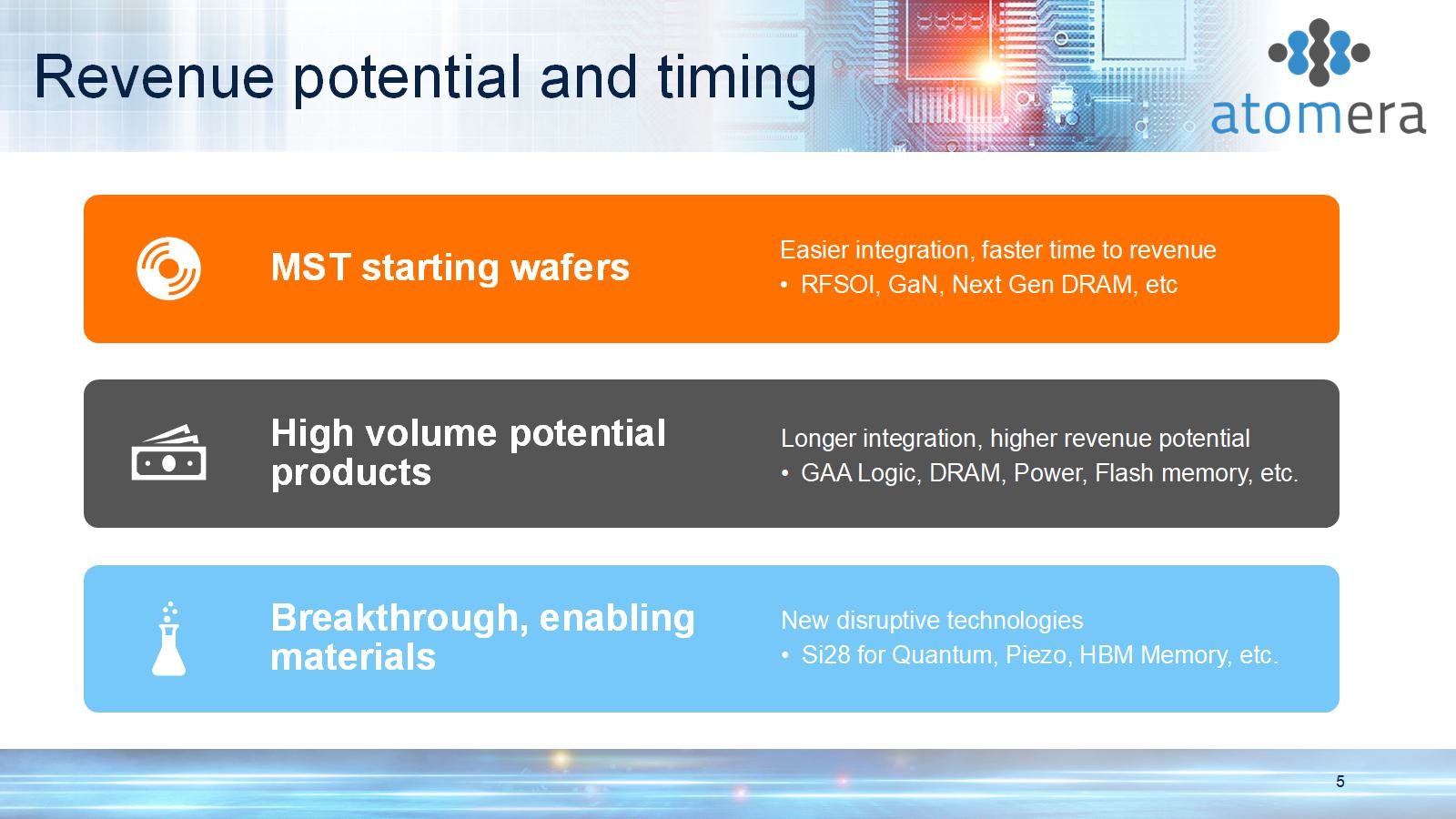 MST technology focus areas Atomera 4 MST for Advanced Nodes MST for RF - SOI MST for Power MST for DRAM