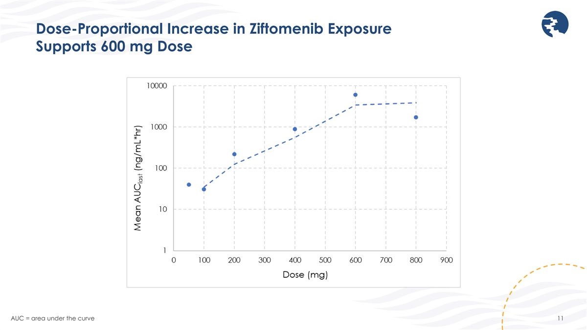 Dose-Proportional Increase in Ziftomenib Exposure Supports 600 mg Dose AUC = area under the curve 11