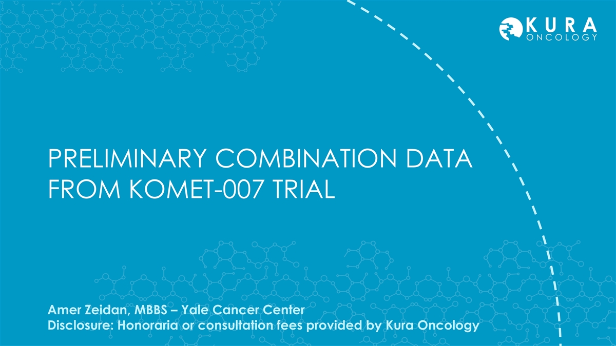 PRELIMINARY COMBINATION DATA FROM KOMET-007 TRIAL Amer Zeidan, MBBS – Yale Cancer Center Disclosure: Honoraria or consultation fees provided by Kura Oncology