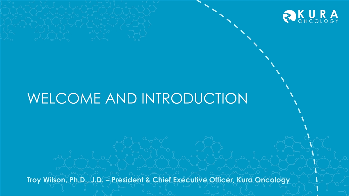 WELCOME AND INTRODUCTION Troy Wilson, Ph.D., J.D. – President & Chief Executive Officer, Kura Oncology