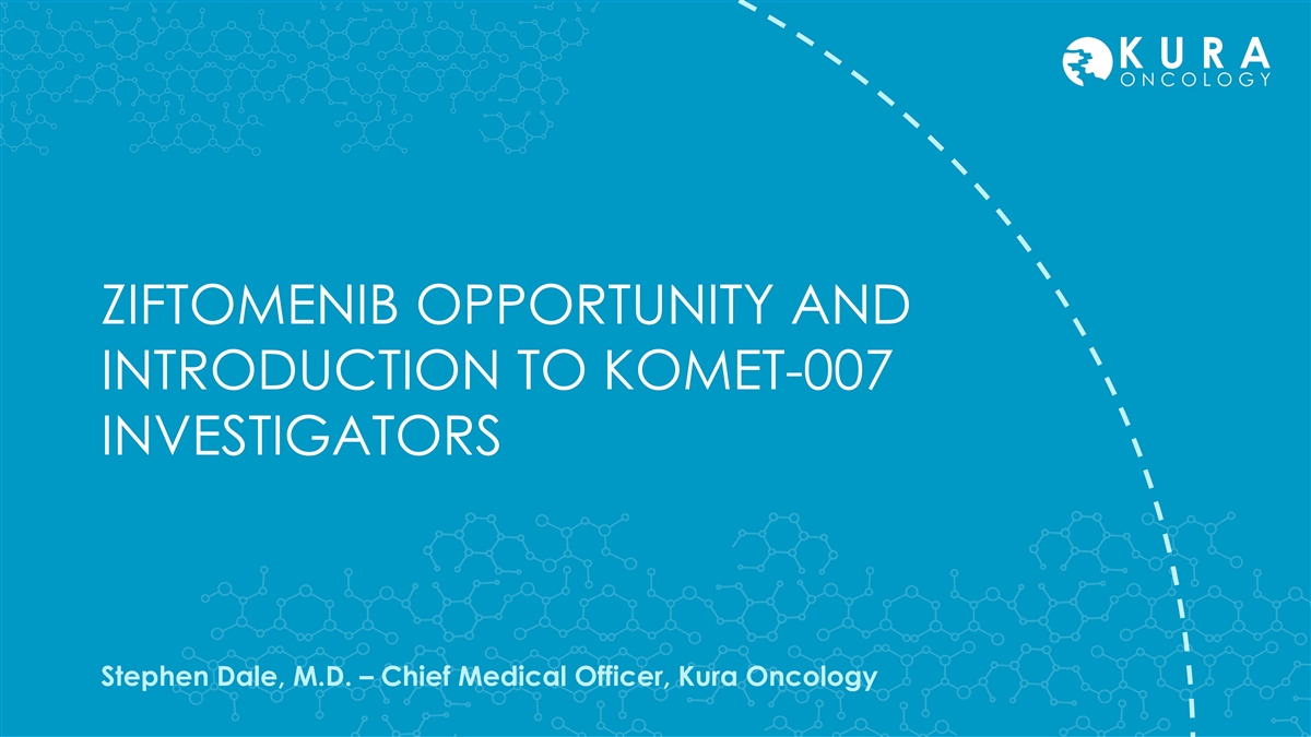 ZIFTOMENIB OPPORTUNITY AND INTRODUCTION TO KOMET-007 INVESTIGATORS Stephen Dale, M.D. – Chief Medical Officer, Kura Oncology