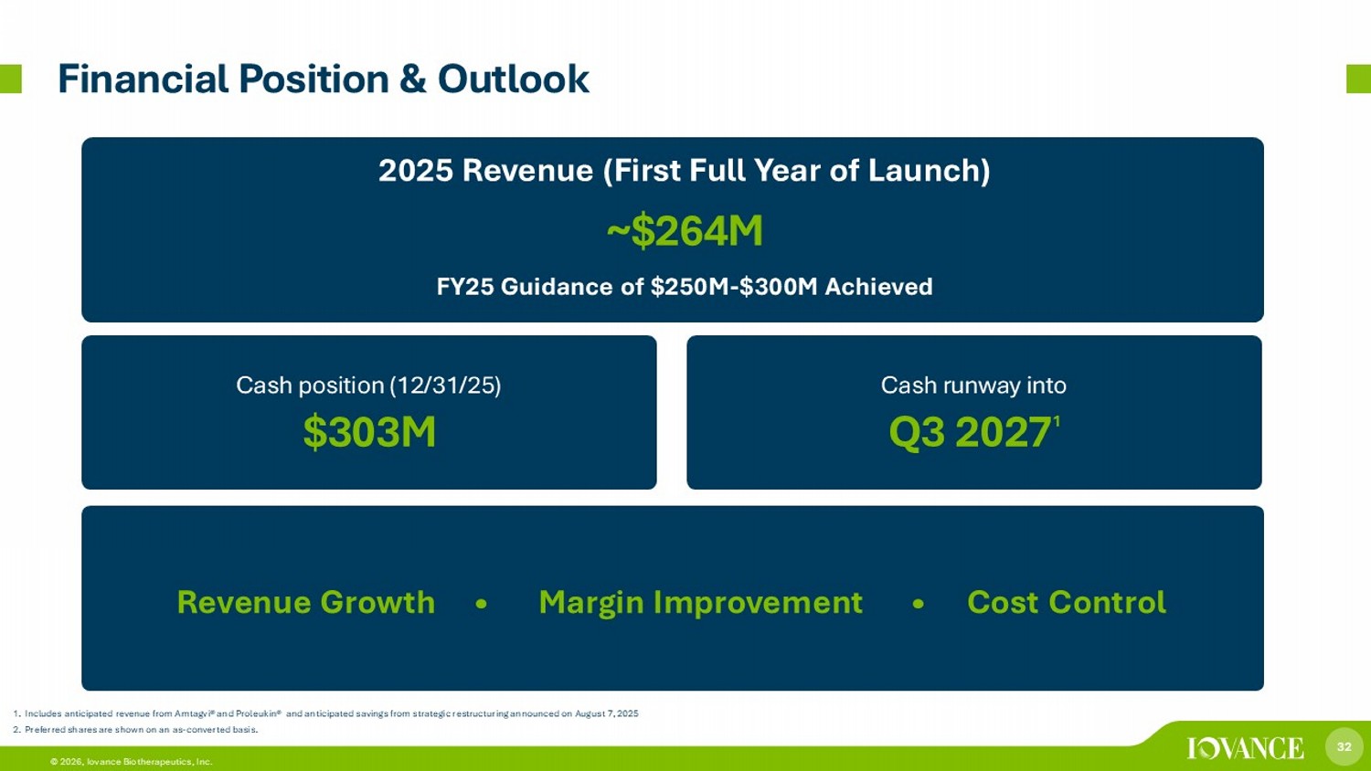 31 © 2026, Iovance Biotherapeutics, Inc. 31 Corporate Summary