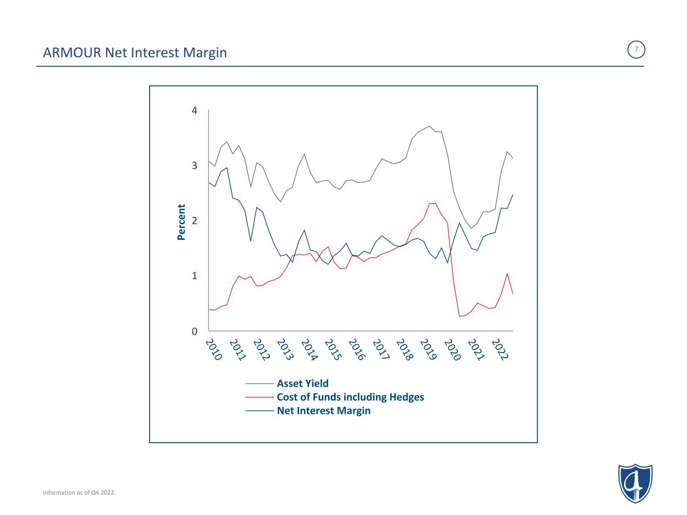 7ARMOUR Net Interest Margin Pe rc en t Asset Yield Cost of Funds including Hedges Net Interest Margin 2010 2011 2012 2013 2014 2015 2016 2017 2018 2019 2020 2021 2022 0 1 2 3 4 Information as of Q4 2022.