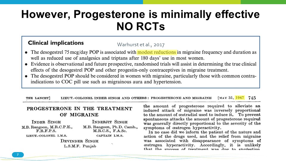 However, Progesterone is minimally effective NO RCTs Warhurst et al., 2017 7
