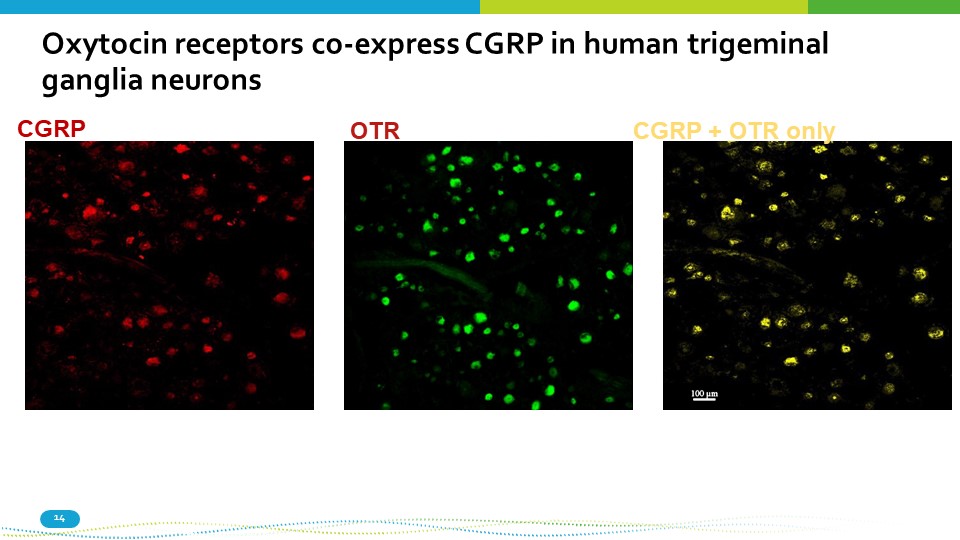 CGRP 14 OTR CGRP + OTR only Oxytocin receptors co - express CGRP in human trigeminal ganglia neurons