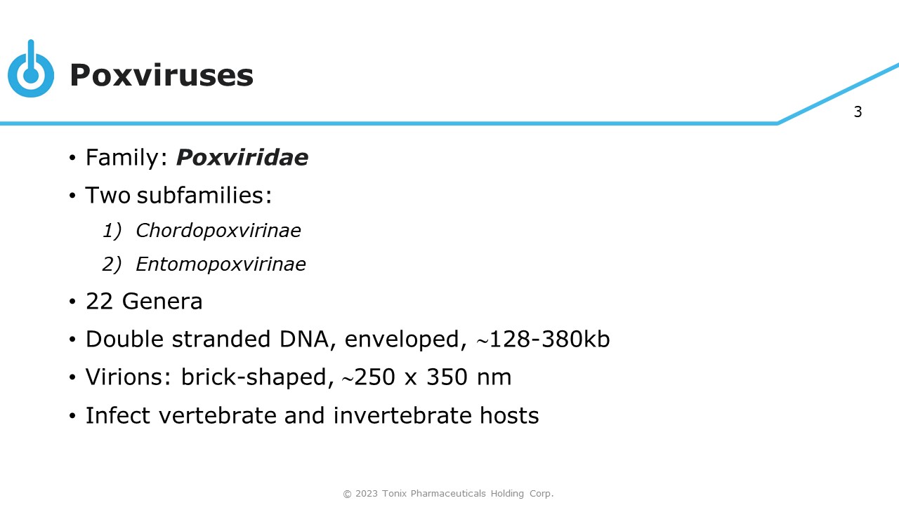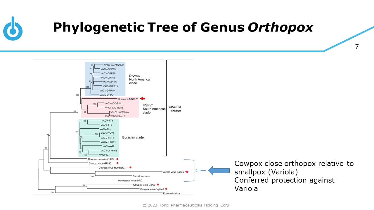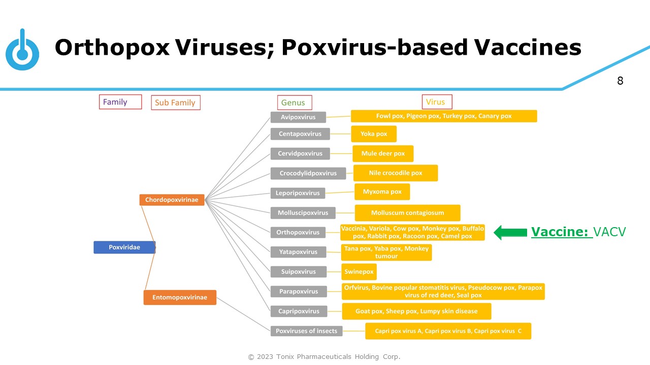 8 Orthopox Viruses; Poxvirus - based Vaccines Vaccine: VACV © 2023 Tonix Pharmaceuticals Holding Corp.