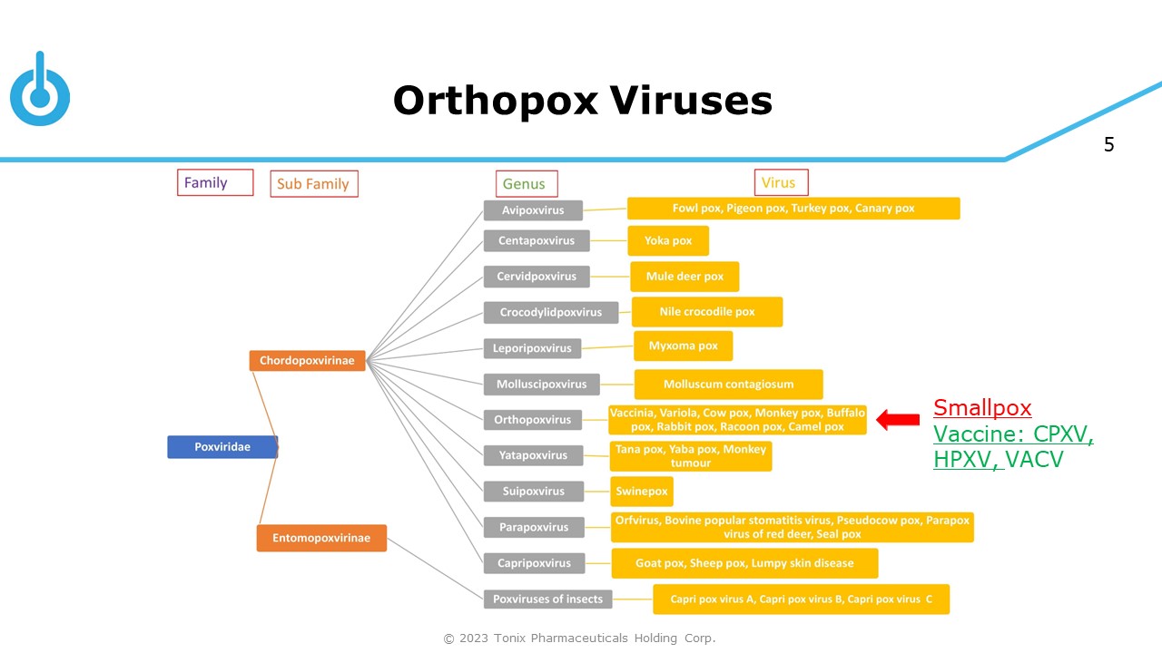 5 Orthopox Viruses Smallpox Vaccine: CPXV, HPXV, VACV © 2023 Tonix Pharmaceuticals Holding Corp.