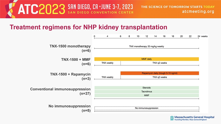 Aims of the study In this study, we compared TNX - 1500 with conventional anti - CD154 antibodies in terms of platelet activation in vitro and evaluated the efficacy of TNX - 1500 to prevent kidney allograft rejection in an NHP kidney transplantation model.