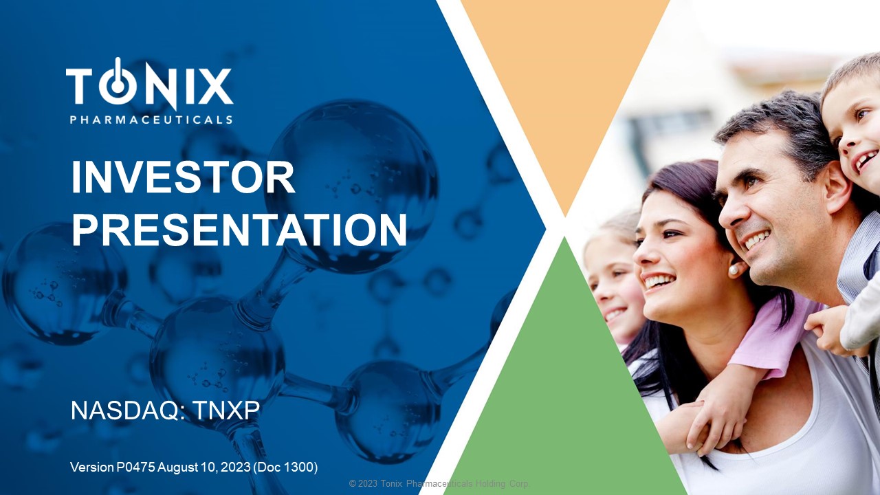 © 2023 Tonix Pharmaceuticals Holding Corp. INVESTOR PRESENTATION NASDAQ: TNXP Version P04 75 August 10, 2023 (Doc 1300 )
