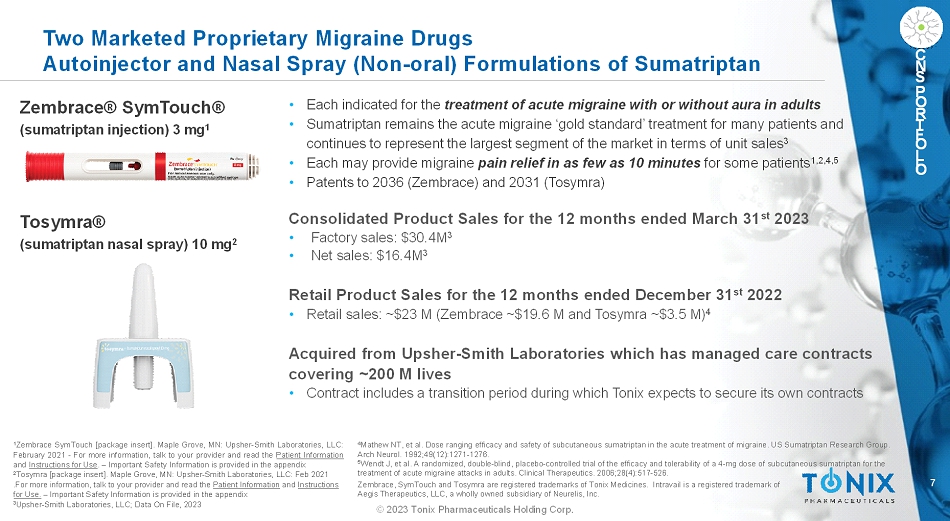 © 2023 Tonix Pharmaceuticals Holding Corp. TONIXMEDICINES: MARKETED PRODUCTS
