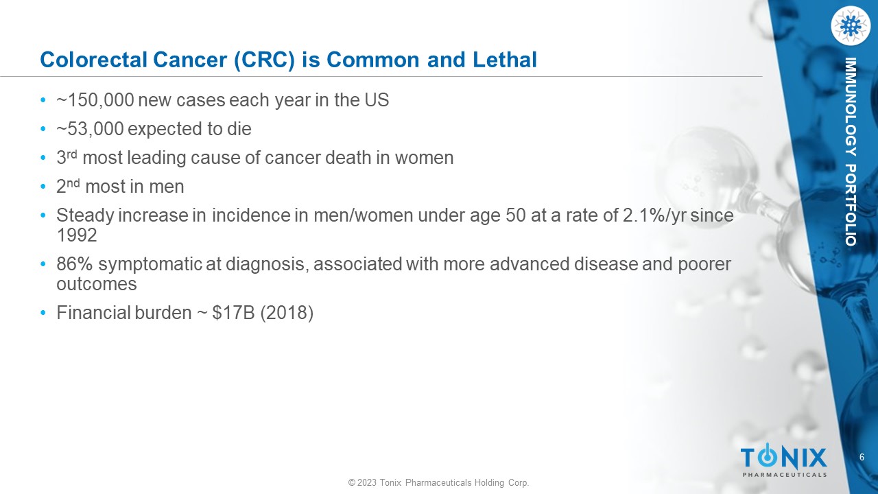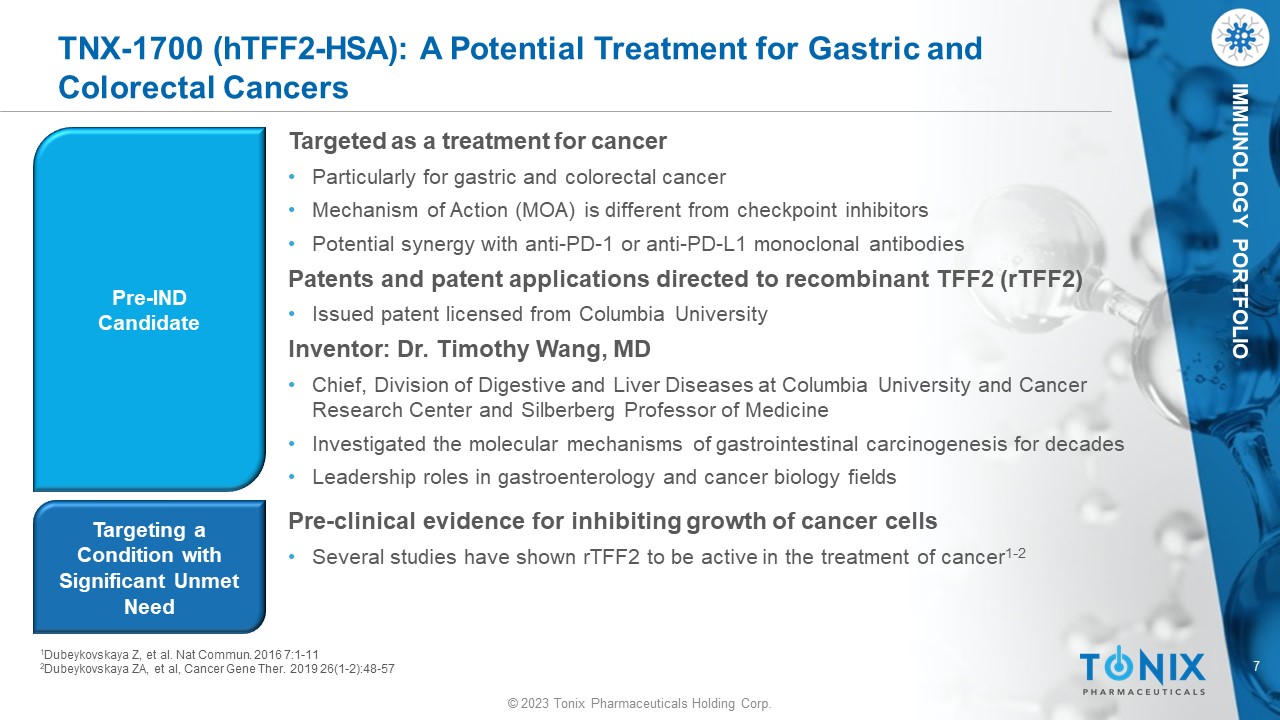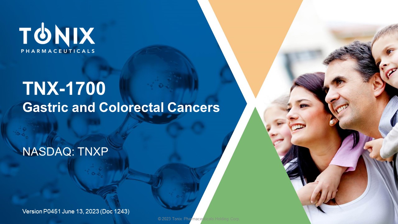 © 2023 Tonix Pharmaceuticals Holding Corp. © 2023 Tonix Pharmaceuticals Holding Corp. TNX - 1700 Gastric and Colorectal Cancers NASDAQ: TNXP Version P0451 June 13 , 2023 (Doc 1243)