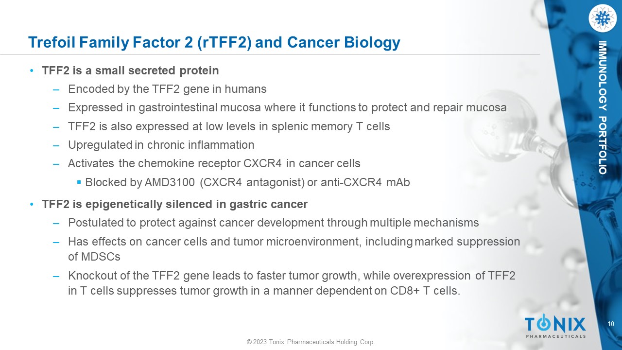 © 2023 Tonix Pharmaceuticals Holding Corp. © 2023 Tonix Pharmaceuticals Holding Corp. TNX - 1700 (hTFF2 - HSA) fusion protein) Tumor Microenvironment, MDSCs