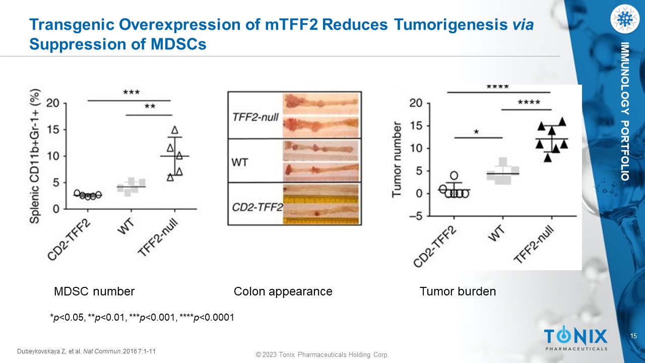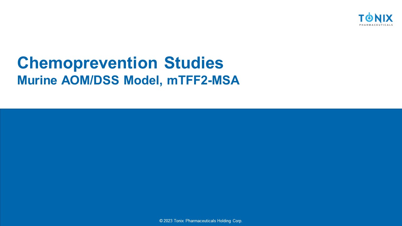 © 2023 Tonix Pharmaceuticals Holding Corp. © 2023 Tonix Pharmaceuticals Holding Corp. Chemoprevention Studies Murine AOM/DSS Model, mTFF2 - MSA