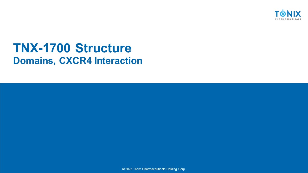 © 2023 Tonix Pharmaceuticals Holding Corp. © 2023 Tonix Pharmaceuticals Holding Corp. TNX - 1700 Structure Domains, CXCR4 Interaction